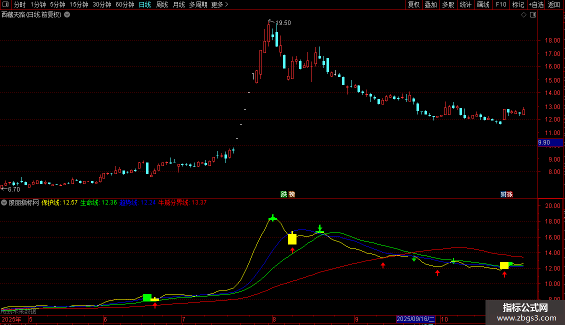 趋势线:MA(C,12),COLORBLUE; 牛熊分界线:MA(C,55),COLORRED; VAR1:=ZIG(3,10)<REF(ZIG(3,10),1) AND REF(ZIG(3,10),1)>REF(ZIG(3,10),2); VAR2:=ZIG(3,10)>REF(ZIG(3,10),1) AND REF(ZIG(3,10),1)<REF(ZIG(3,10),2);
