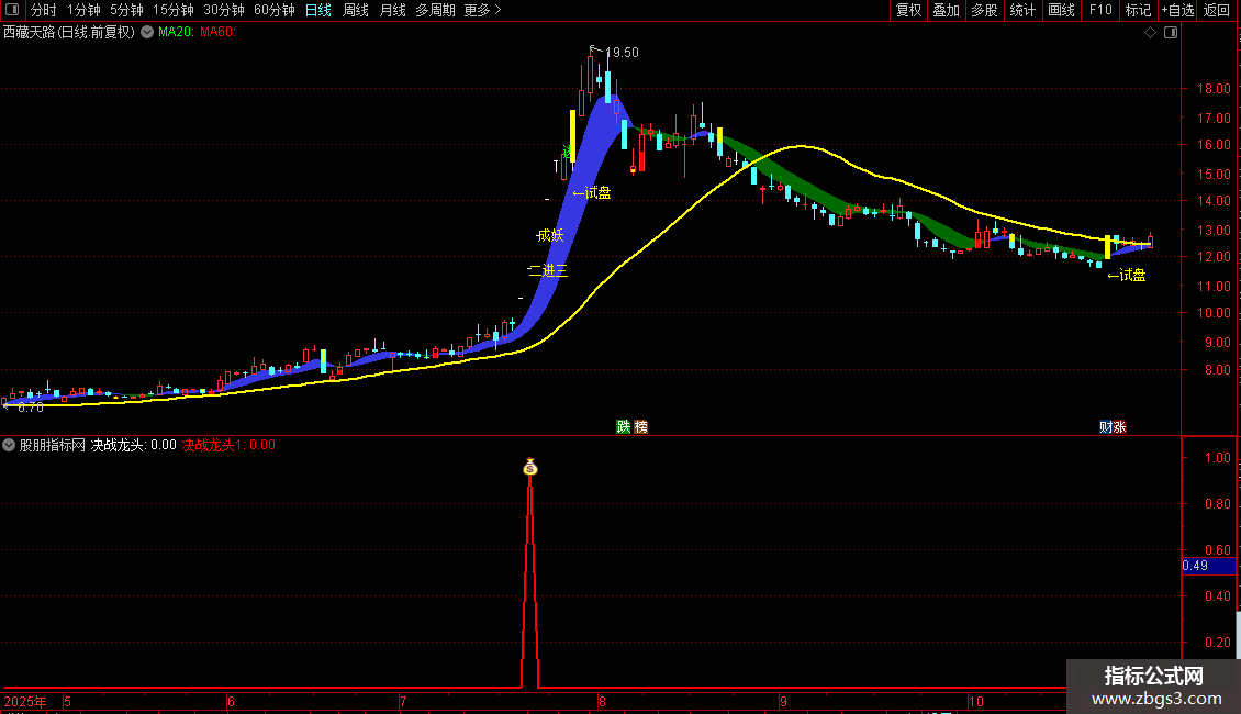 持有:价格在红色趋势线上方运行时,中线持有;跌破生命线(30日均线)需警惕。
