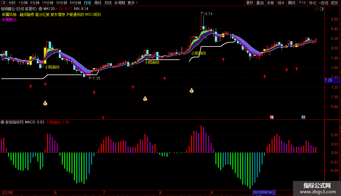 2.核心逻辑解析:主图小阳启动信号与副图红色量能柱形成双重验证。首次共振时,量能柱变红且主图出现启动信号,