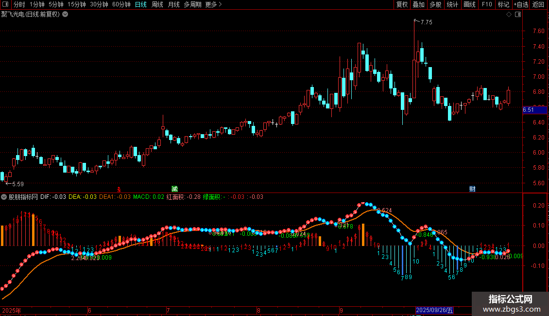 DRAWNUMBER(CROSS(DIF,DEA),DEA,REF(绿面积,1)),COLORGREEN;