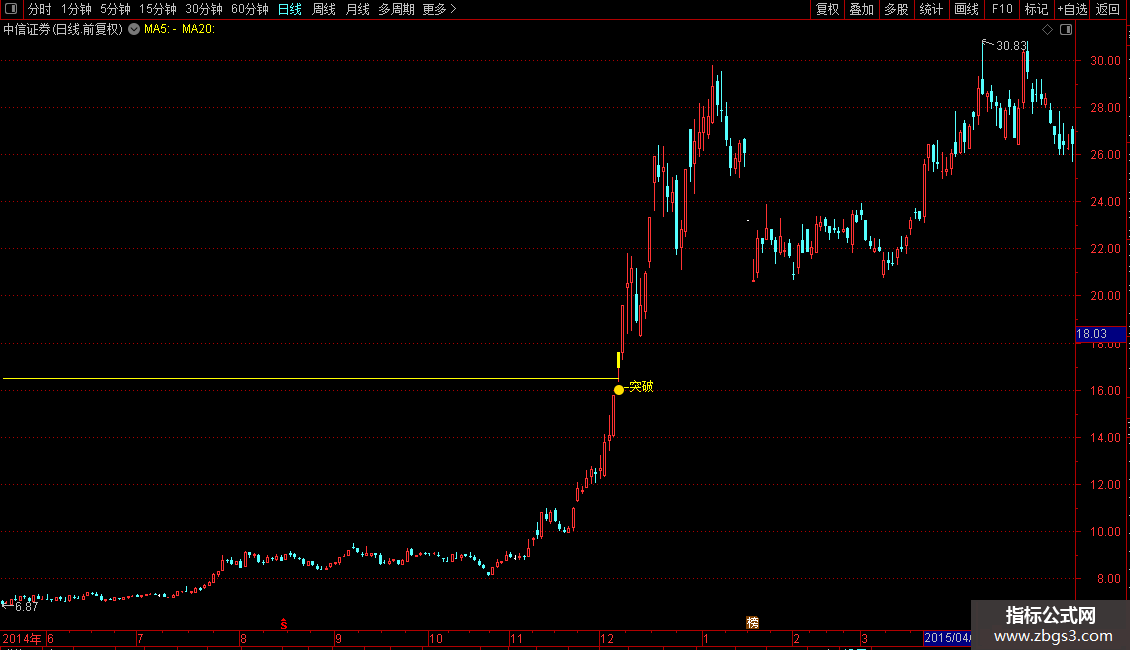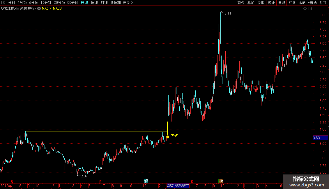 DRAWTEXT(XH,L*0.9905,'←突破'),COLORYELLOW;