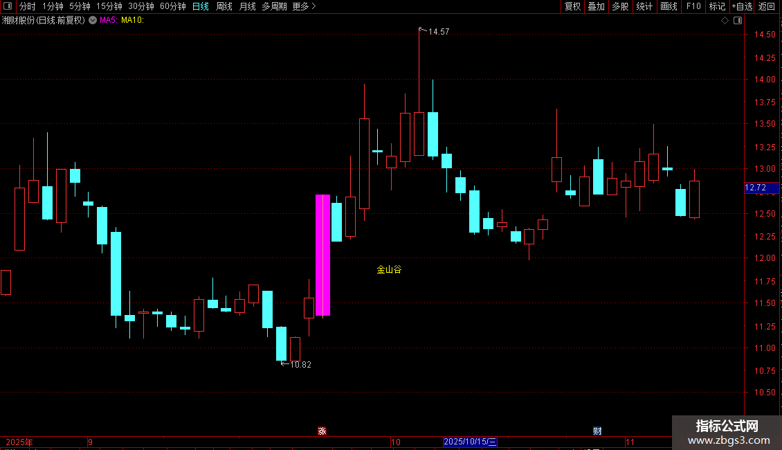 DRAWTEXT(山谷 AND MA(C,5)<MA(C,120),MA(C,30)-0.08,'银山谷'),COLORMAGENTA;