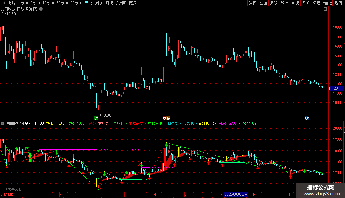 判断:=IF(局部高点预选C=1 AND REF(距前低天,1)<=REF(距前高天,1) AND 预判=1 AND 大值周期>REF(小值周期,距前低天+1) AND 大值周期