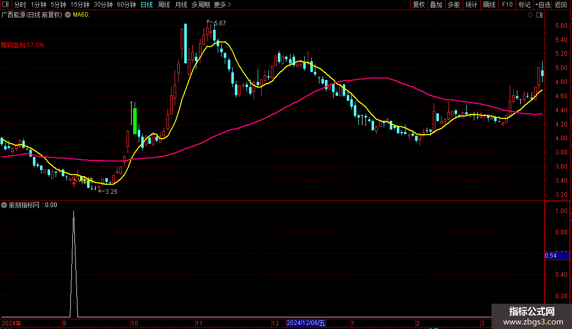 趋势线:MA(CLOSE,60),COLORLIMAGENTA LINETHICK2;