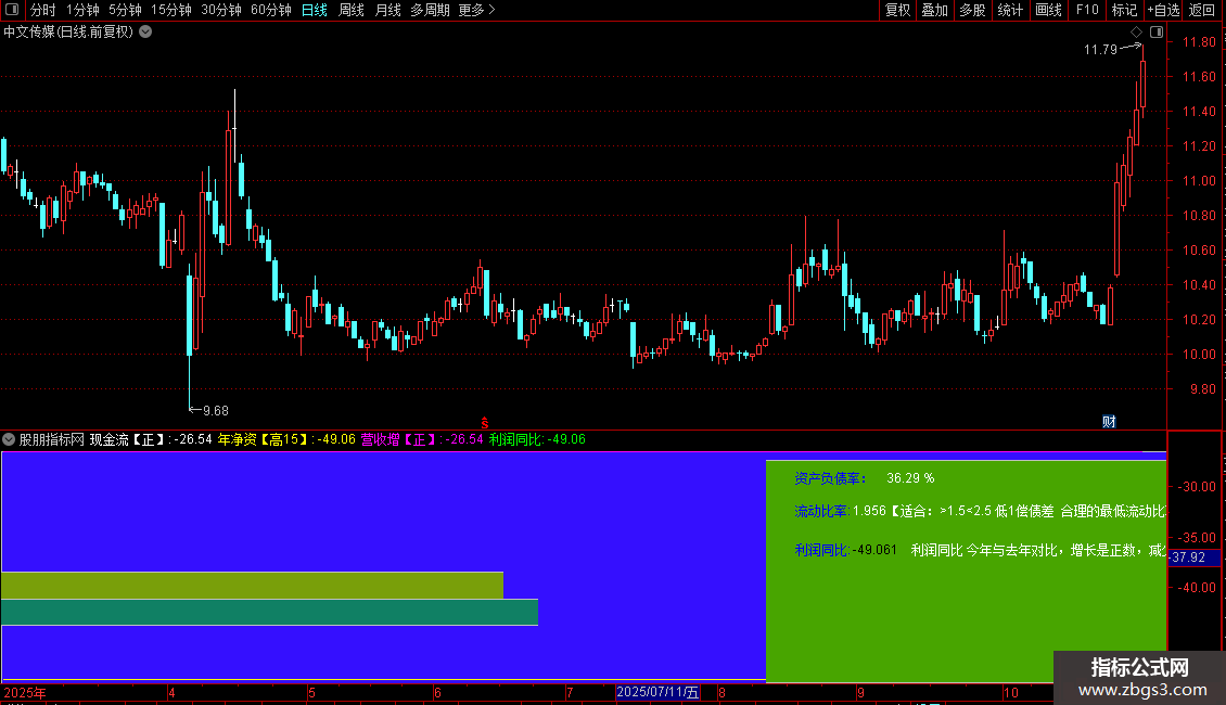 现金流画柱状:DRAWRECTREL(360,120,现金流【正】>0,8,RGB(108,233,110));