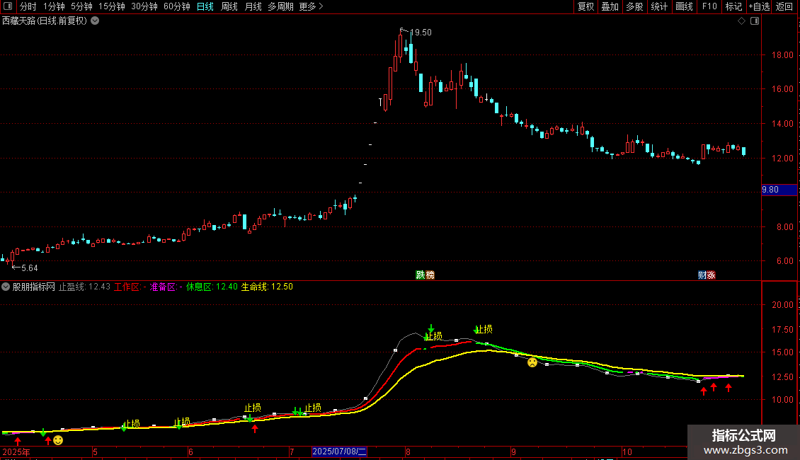 休息区:IF(C<工作线,工作线,DRAWNULL), COLORGREEN, LINETHICK2;