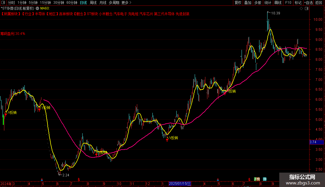 DRAWTEXT(有庄,L-0.0011,'↖V反转'),COLORYELLOW;