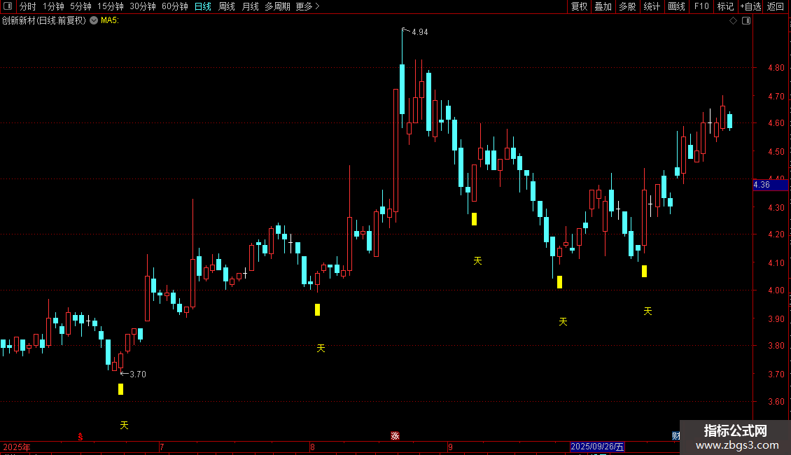 DRAWTEXT(FILTER(天=1,5),LOW*0.95,'天'),COLORYELLOW;