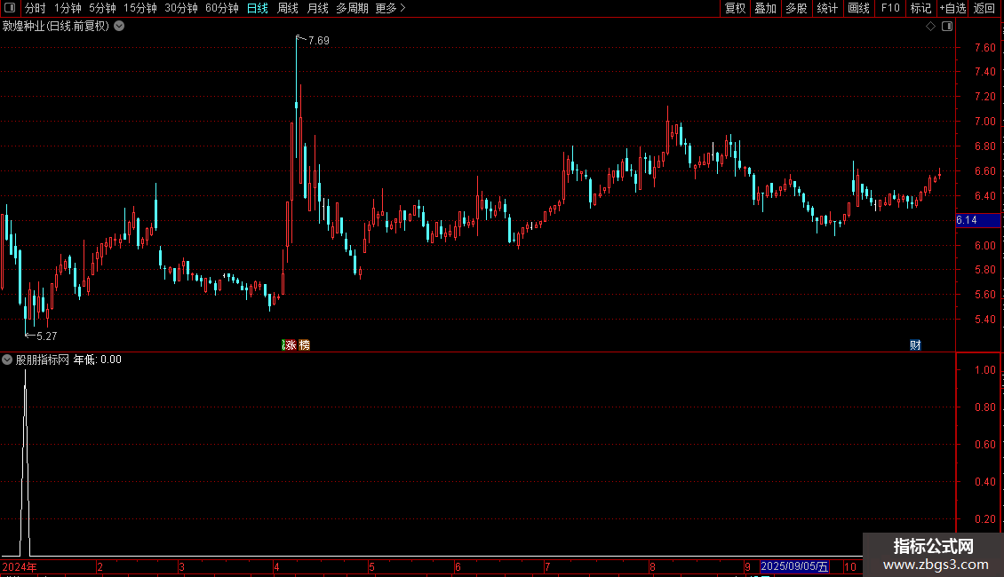 今天这个【年度新低】不是什么神器,也不是买卖信号,更不是分析用的指标 但是确实是一个指标,可以用作特定特征选股搜索工具使用。 【年度新低】符合反应现象当前一年内股价新低位置,这个低点位置是以年计算,也就是假设年交易天数为250天 只代表当前看到的新低点不代表明日以后可能出现的新低。 发这个目的是引导新人研究指标多从理论知识出发,去思考要编写指标去解决那种问题去反应那种现象。 这个【年度新低】作为一个小常识编写小技巧科普供大家参考 指标其实很简单,两句话的事。当知识积累到了,很多东西编写其实是会很精炼。 知识在于平时积累在于多看图多总结。 年:=REFDATE(LLV(L,250),DATE); 年低:年=L AND ((C-L)>(0-C) OR (O-L)>(C-O));