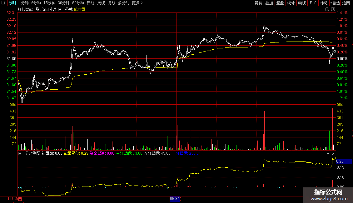 能量潮:(IF(C > (REF(C,1)),(V / (CAPITAL)) * 100,IF(C < (REF(C,1)),((REVERSE(V)) / CAPITAL) * 100,0))),COLORSTICK,LINETHICK2;