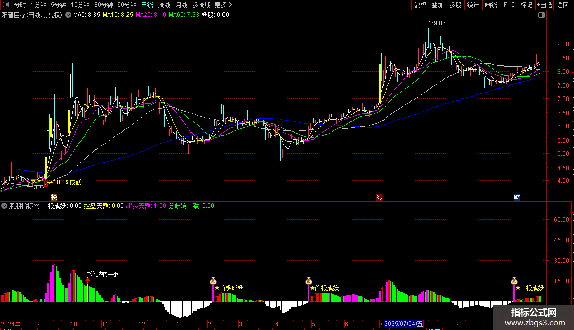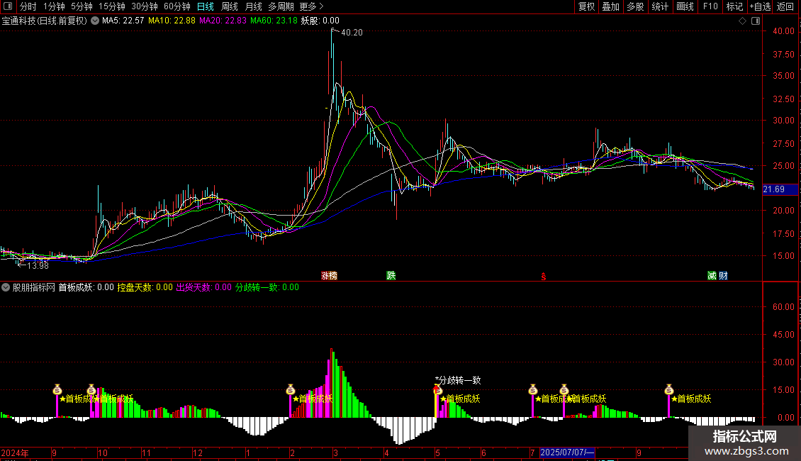 指标通过分析价格变化、筹码集中度和资金流向,识别主力控盘状态和趋势转折点。主要功能包括判断有无庄家控盘、监测主力出货行为、捕捉启动信号。操作策略为:当出现控盘增强且趋势向上时介入,主力出货时减仓,在分歧转一致和首板启动时择机跟进。
