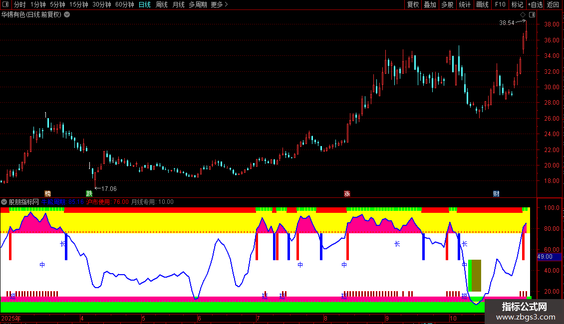 操作策略‌:当指标线从低位上穿关键水平时,视为买入信号;当指标线从高位下穿关键水平时,视为卖出信号。同时,均线系统呈现多头排列时,会标注“短”、“中”、“长”等字样,提示不同周期的趋势启动。‌