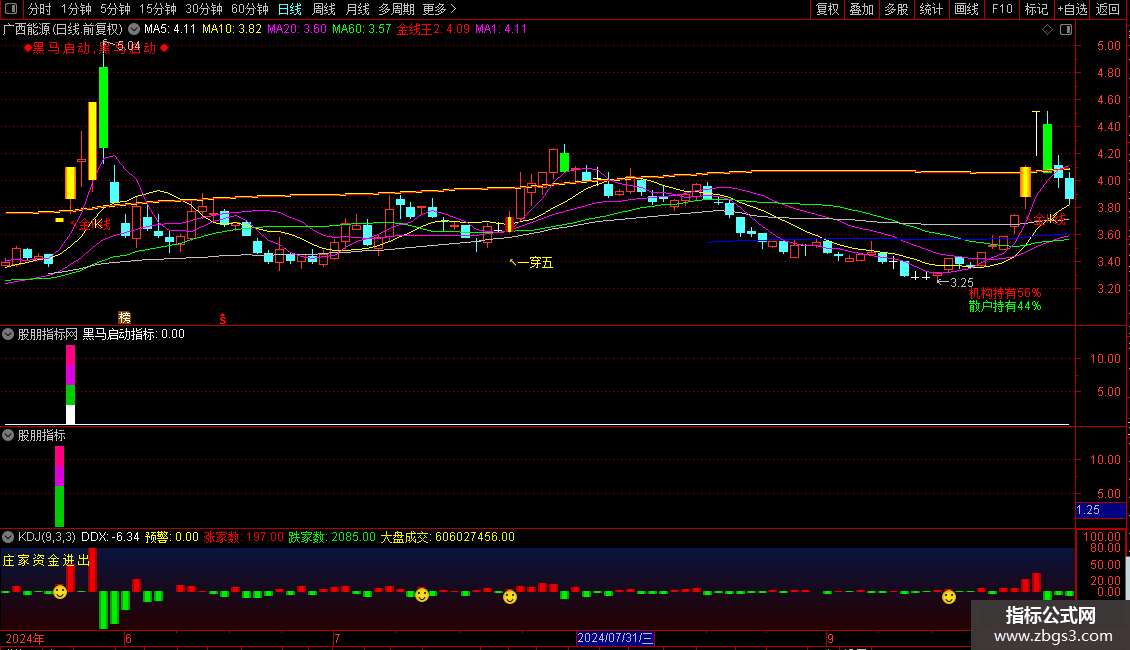 主升浪启动:金K线只要突破了这条线,就开始进入主升浪了。我跟踪了很多个股,没有一个大黑马不是从这里开始的信号。