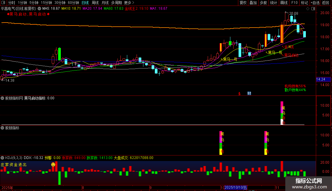 连续涨停之前的黑马一号表现出不同的性质。对于龙头股“黑马一号信号”和“主图黑马一号”信号同时出现,是黑马个股启动密集涨停的核心信号。每一只黑马个股都有其自身的特殊性,它们的启动表现出不同的性质,软件将给出明确的信号提示。如果在结合下面的【黑马启动】选股,形成共振上升的力度就更加猛烈。