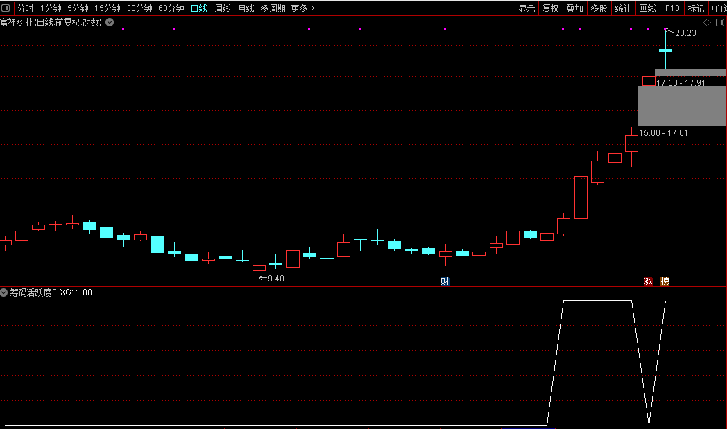 股票是不是强势,还可以从筹码的活性上体现出来,筹码在低位建仓完毕后,庄家肯定会拉升的,要不怎么才能吸引跟风盘;写这个选股核心逻辑是筛选出主力控盘程度较高、量能饱和、活跃度高且换手充分的股票。