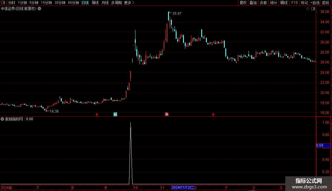 该指标为附图指标也可用作日线选股,在此提醒本指标为学习参考之用不作为实战买卖之唯一决策,如因该指标盲目有操作南极不负担任何责任。
