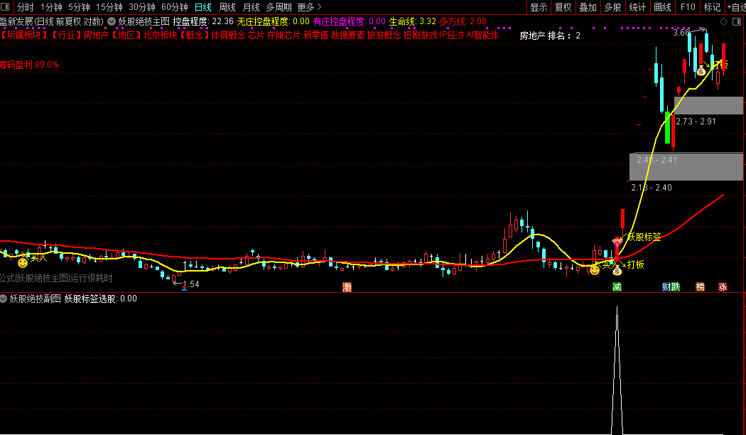主图指标是一款专注于妖股挖掘、趋势跟踪和买卖信号提示的综合技术指标,适用于通达信软件个股行情界面。核心逻辑围绕价格波动、量能变化、筹码结构、主力控盘和板块属性五大维度,通过多条件组合筛选潜在妖股,同时提供买入、卖出、打板及妖股标签等明确信号,辅助短线交易决策。