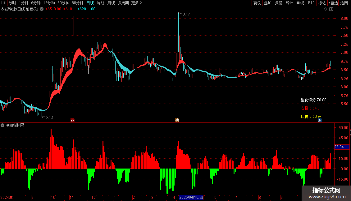 4、指标核心卖点为量化评分,范围0-90分。评分越高个股走势越强,低于50分建议观望。