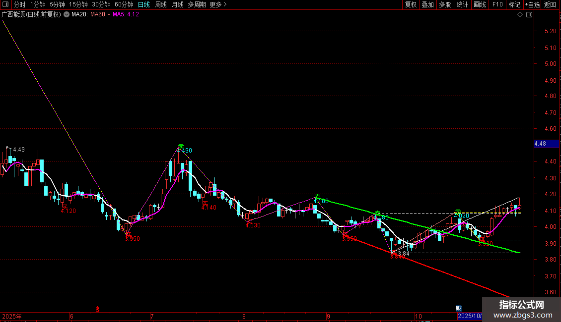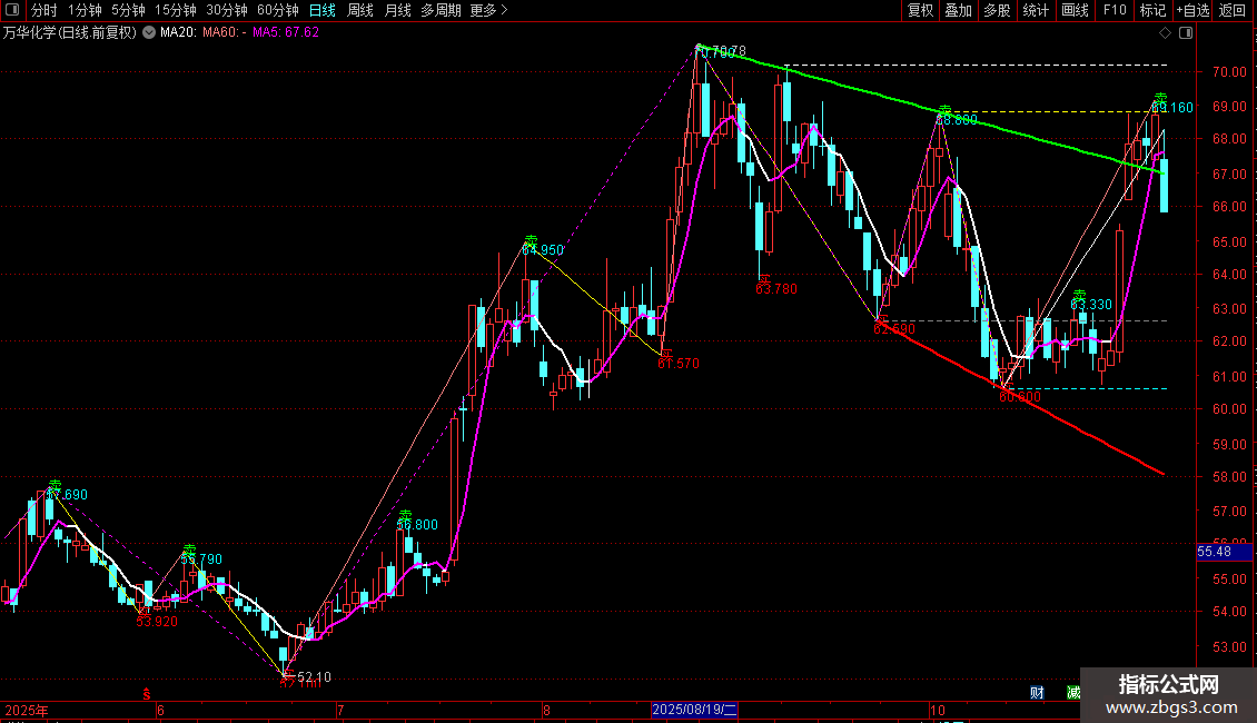 趋势低:=PLOYLINE(DISP=3,ZIG(2,K*N2)),COLORLIBLUE;