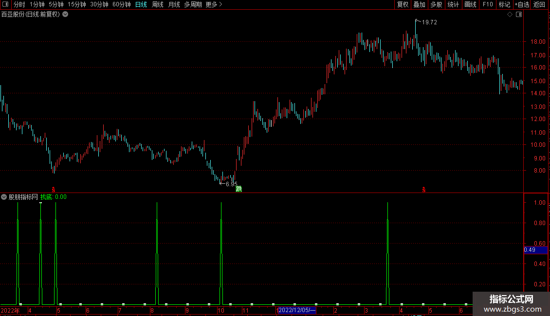 找底:RR AND NOT(REF(RR,1)) AND (RR1<-100 AND BB1<-100) AND CB1<-100,COLORGREEN;