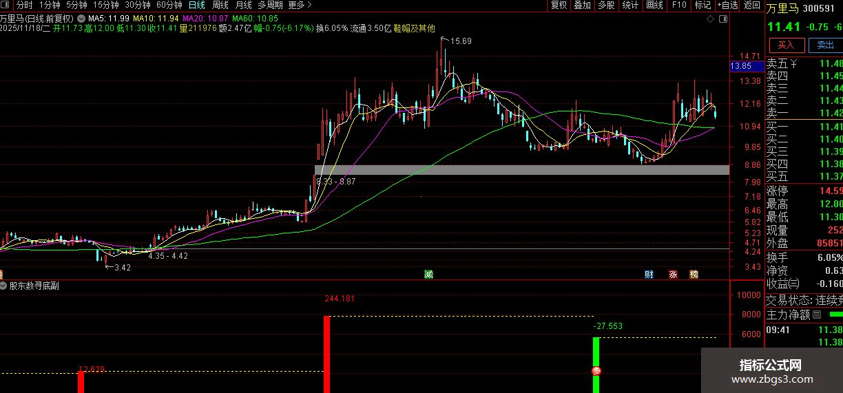 股东数寻底指标含副图和选股功能,通过股东数变化判断底部,提供指标源码,仅限通达信电脑版使用。