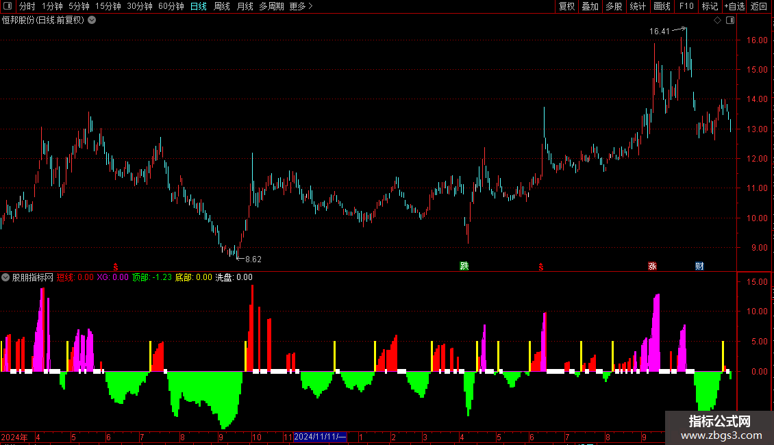 STICKLINE(洗盘=1,-0.3,0.3,3,0),COLORWHITE;