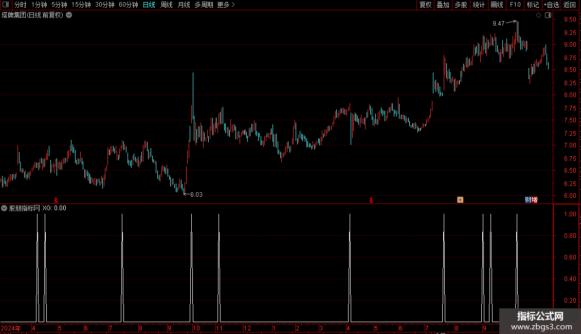 牛股持股线:=IF((HHV(MA5,100)=MA5),HHV(MA5,100),DRAWNULL),COLORRED,LINETHICK3;