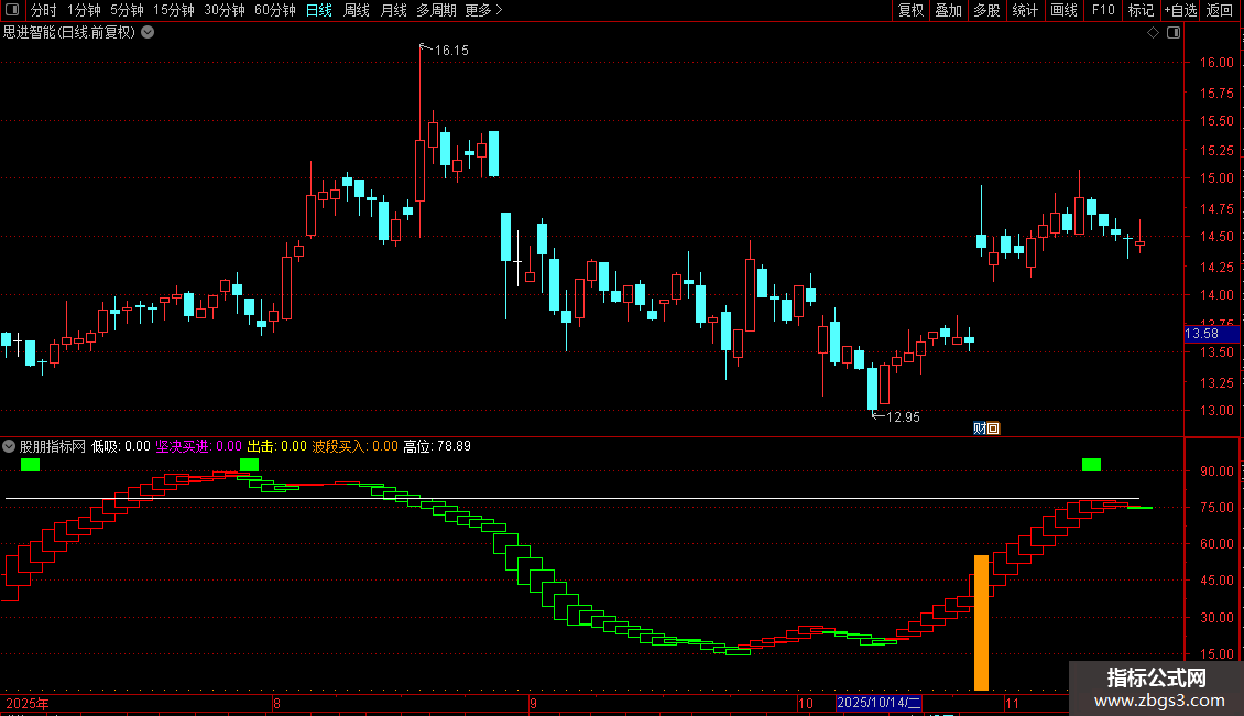 低吸:IF(CROSS(RSI,11),70,0),COLORWHITE,POINTDOT;
