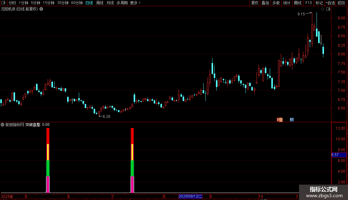 DRAWTEXT(突破盘整,1.5,''),COLORRED;