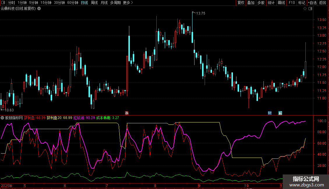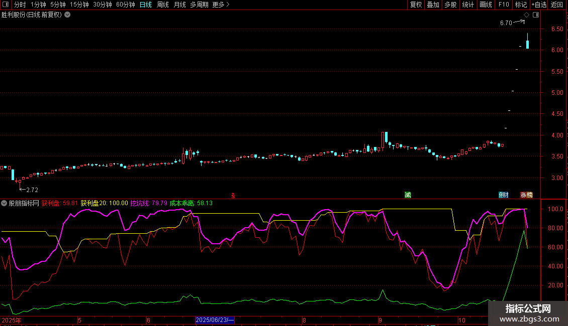 挖坑线:EMA((100+获利盘-获利盘20),3),COLORMAGENTA,LINETHICK2;