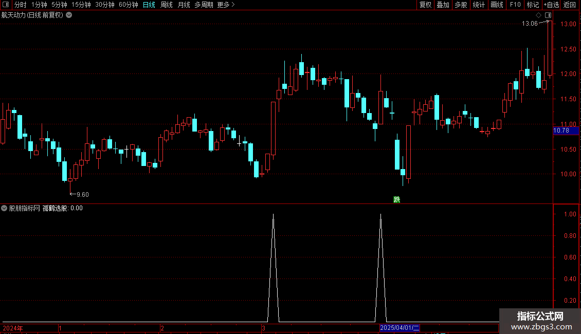 为解决前帖《孤鹤缠图》中有同学提出的选股预警问题,特在原指标中添加了主力控盘因素,并将条件放宽到6个点起爆,成妖条件不变!