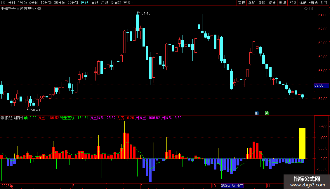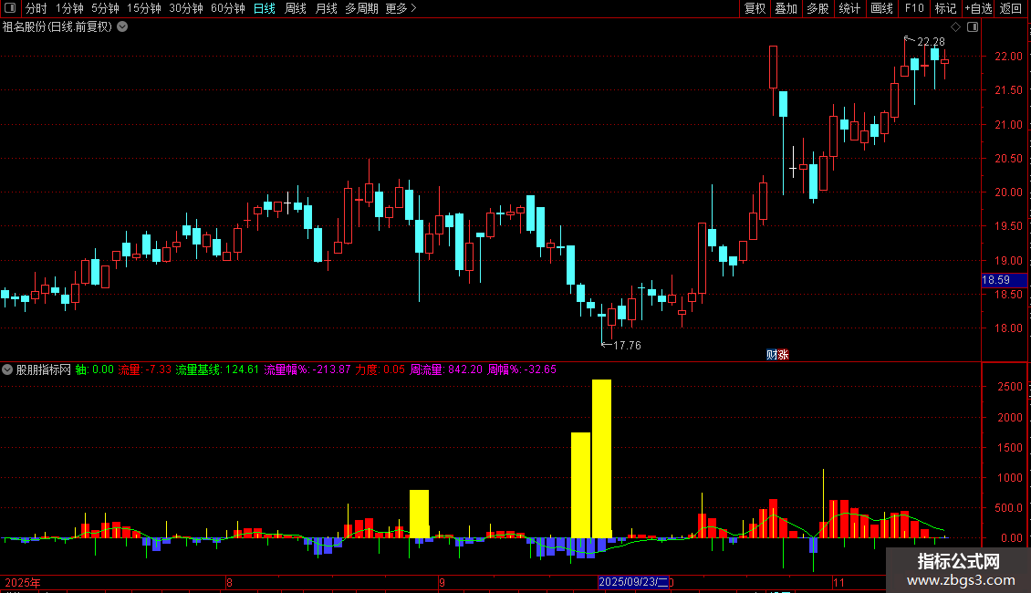 出货:=IF(ZC_2>0 AND ZC_2>REF(ZC_2,1),ZC_2/20,0);