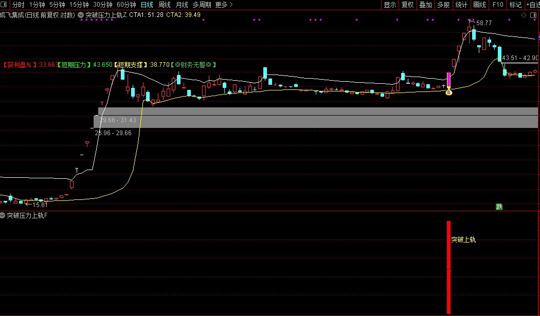 通达信【突破压力上轨】主副/选股叠加趋势异动信号与筹码突破信号源码