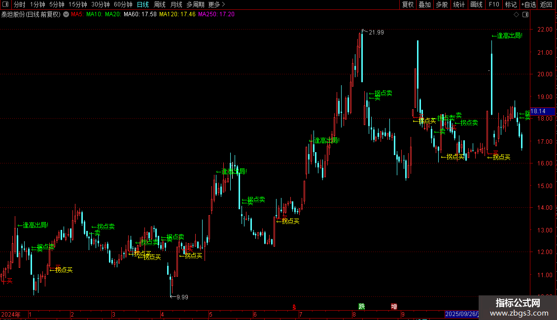 DRAWTEXT(CROSS(卖线,买线),HIGH*1.01,'←卖'),COLORGREEN;