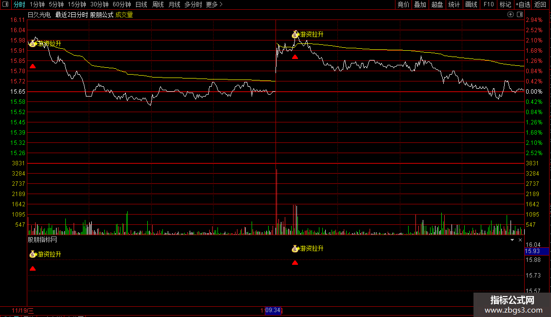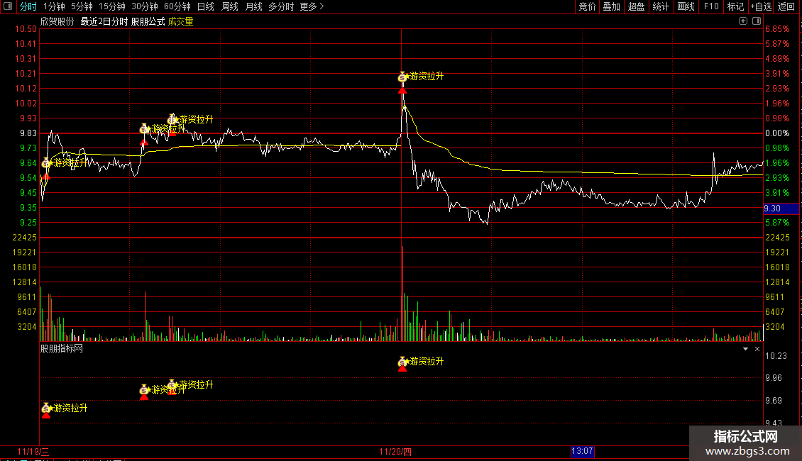 『分时游资拉升』指标 盘中发现游资拉升信号的分时图工具