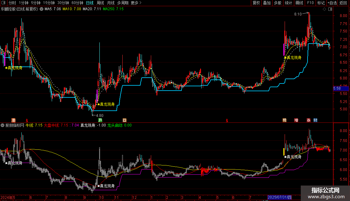 一:真龙现身主图指标源码如下: