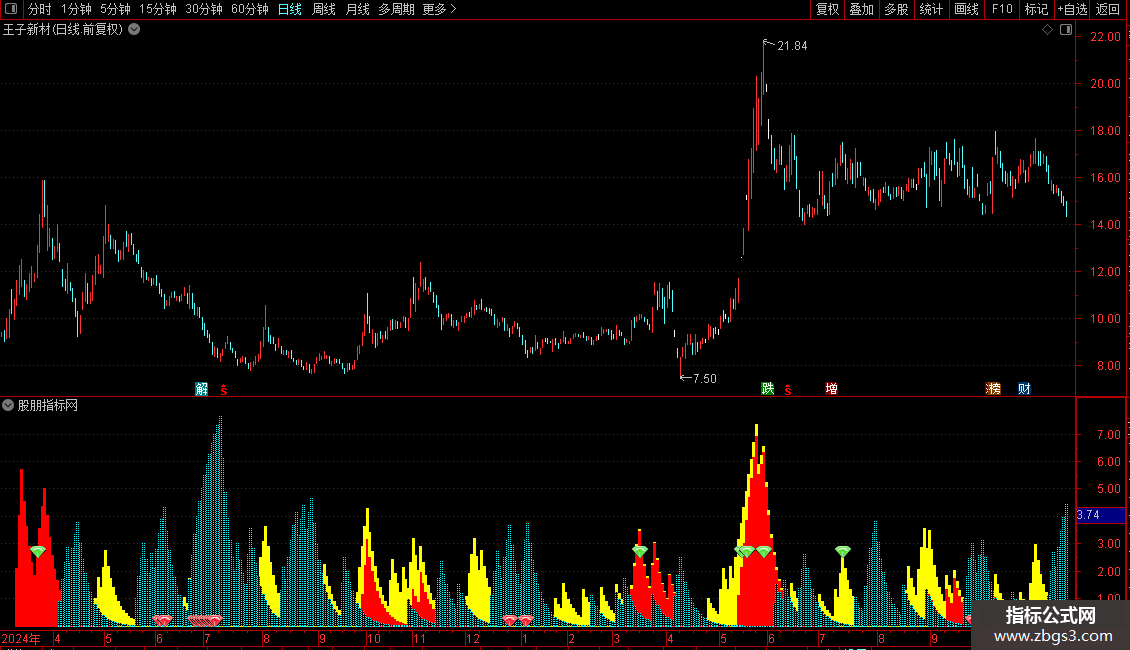 VAR7:=3-(EMA(IF(H>=HHV(H,34),-VAR5/VAR6,3),9));