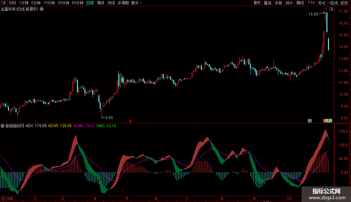 OMD:(ADX-2*ADMA+ADXR)/2, COLORSTICK;