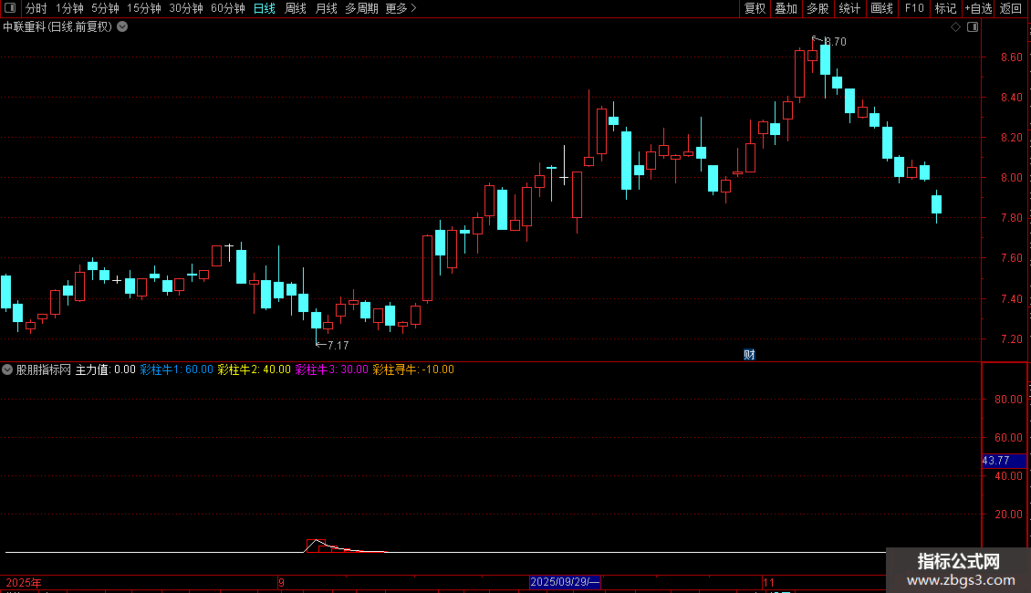 彩柱寻牛指标包含副图与选股功能,属底部类技术指标。信号出现表明进入底部区域,存在反转机会,且信号无漂移,源码支持手机电脑双端通用。