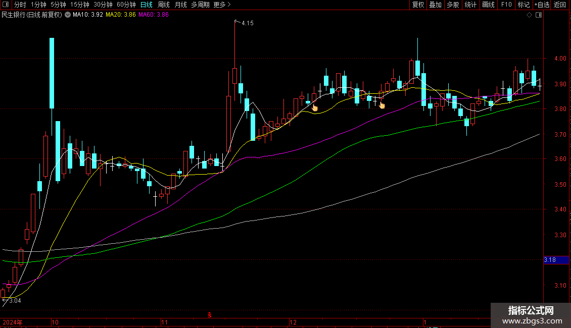 1、均线采用MA3、MA5、MA13、MA34、MA55、MA90。猴子爬杆出现在90M之上为高位区,强势区;再细分在34M之上、34M处、34M之下、90M处四个位置。
