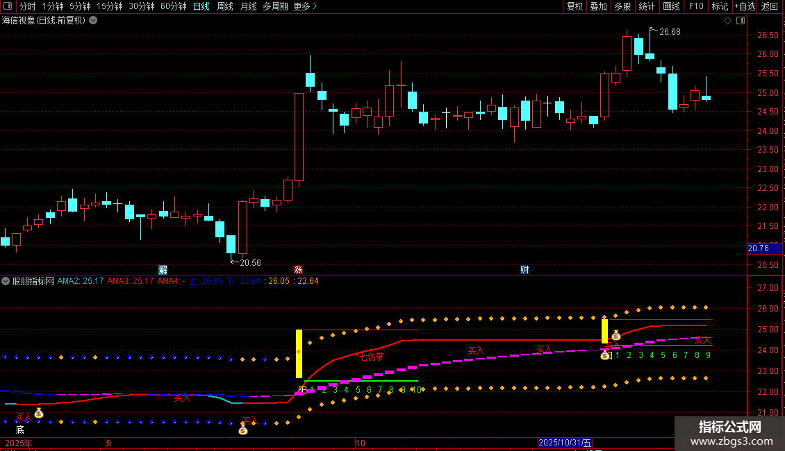 上升:=IF(红轨道>=绿轨道,绿轨道,DRAWNULL),COLORRED,LINETHICK2;