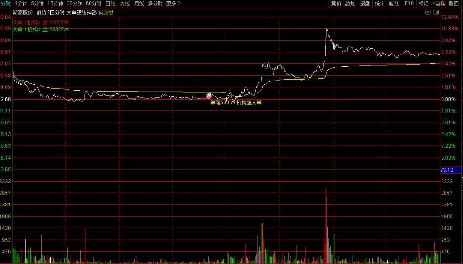 通达信【大单短线神器】分时主图指标统计并显示机构级别的大单进出金额源码