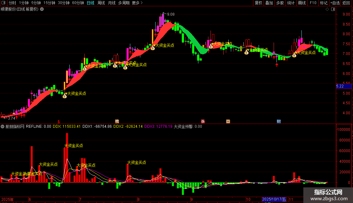 DDX:EMA(大资金买量-大资金卖量,5)*VOL/CAPITAL*100,COLORSTICK,LINETHICK2;
