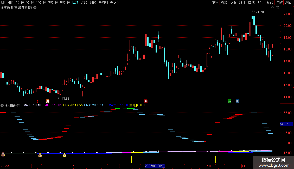 G3:=EMA120-EMA60<220/1000 AND EMA120-EMA90<320/1000 AND EMA120-EMA250<420/1000;