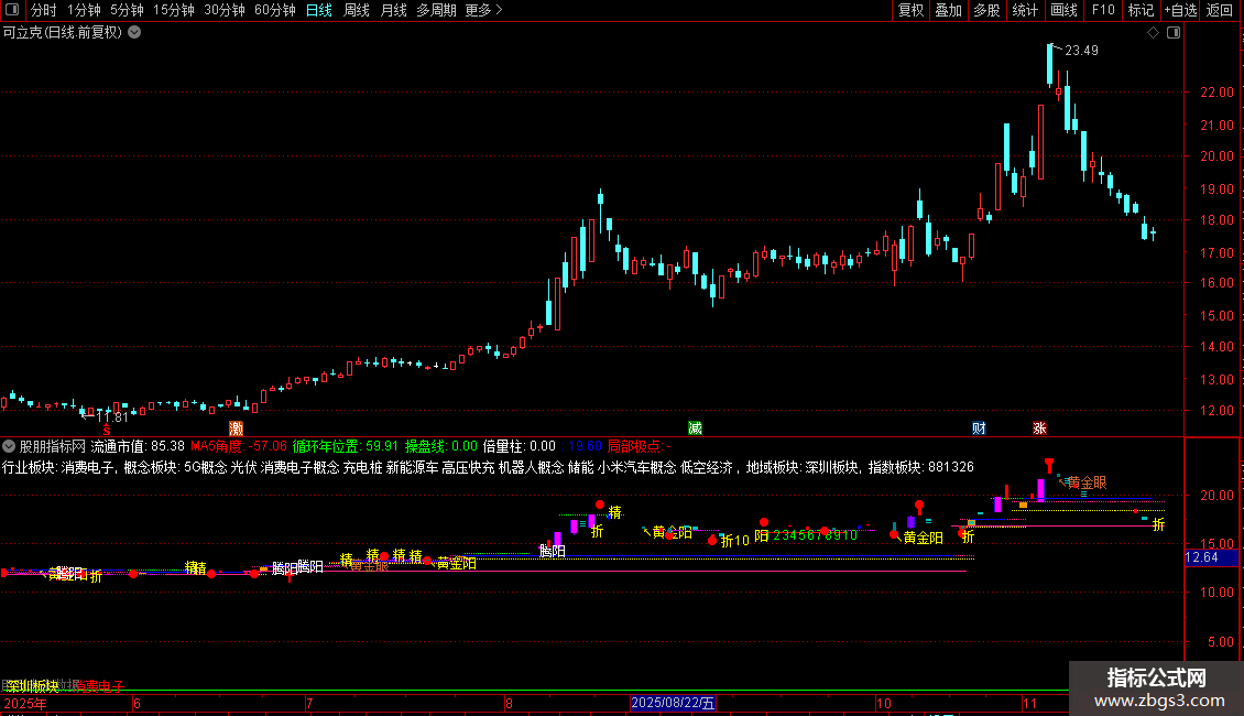 局部极点:IF(极点保留=-1,L,IF(极点保留=1,H,DRAWNULL)),CIRCLEDOT,{2.红色 }COLORRED,LINETHICK3;