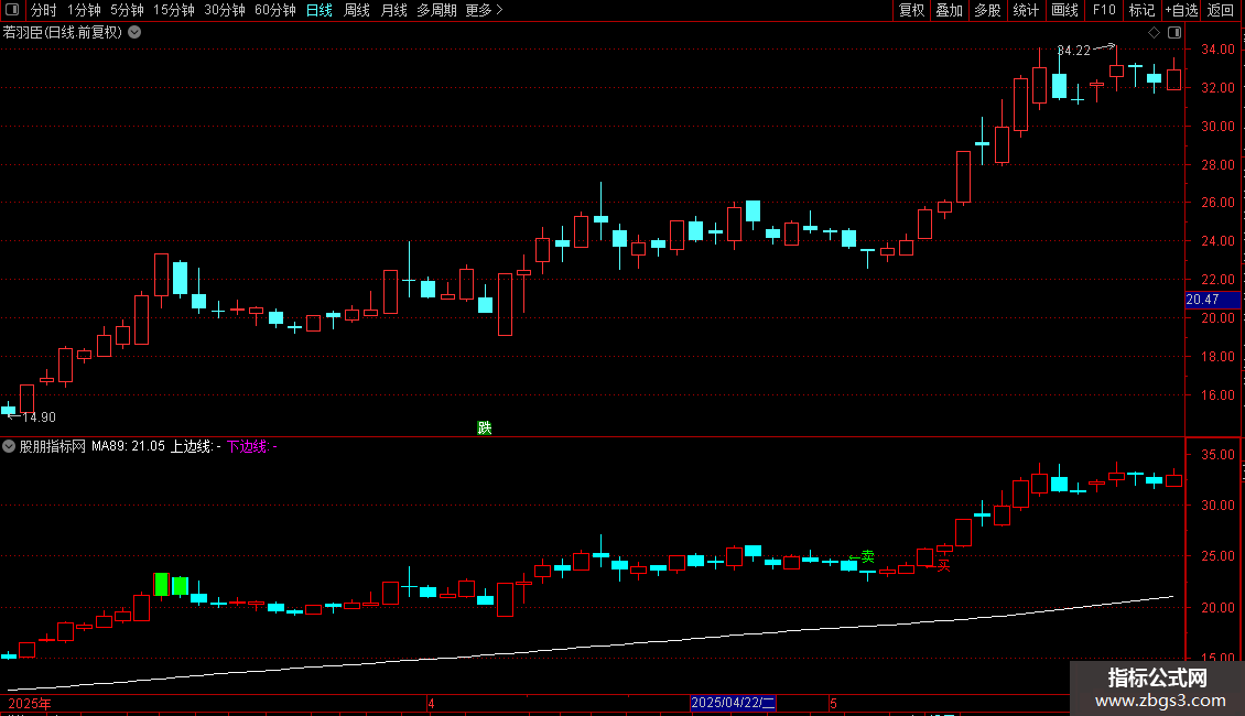 下边线:IF(BARSLAST(TJ),REF(LOW,BARSLAST(TJ)),DRAWNULL),COLORMAGENTA;