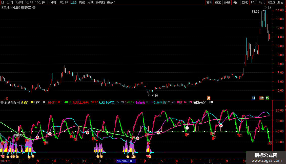 IF(机会来临>=REF(机会来临,1),机会来临,DRAWNULL),COLORCC33CC,LINETHICK2;