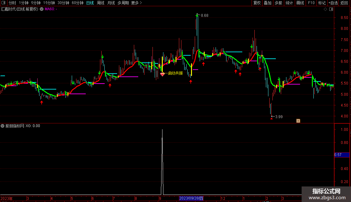 DRAWTEXT(XG,LOW*0.99,'○---启动共振'),COLORYELLOW;