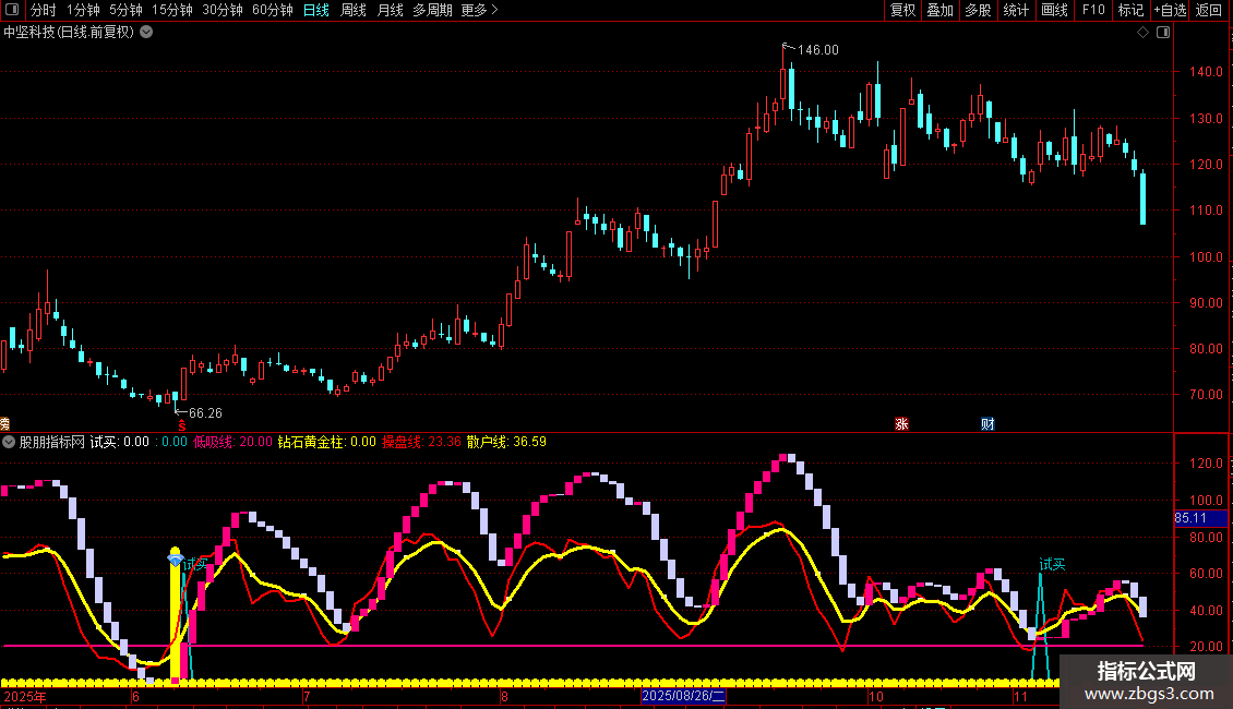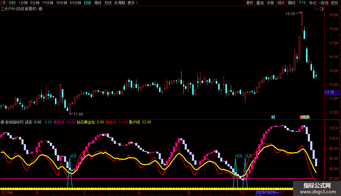 散户线:SMA(操盘线,3,1),LINETHICK3,COLORYELLOW;