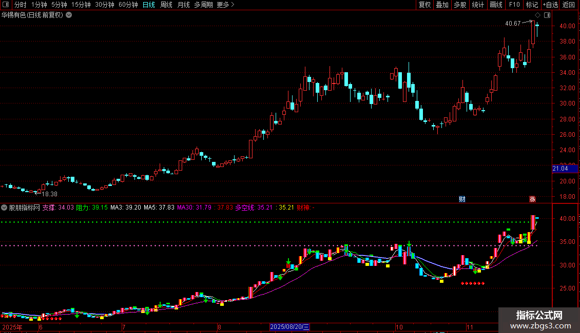 度假赋值:A0的25日指数移动平均画黄色,线宽为1